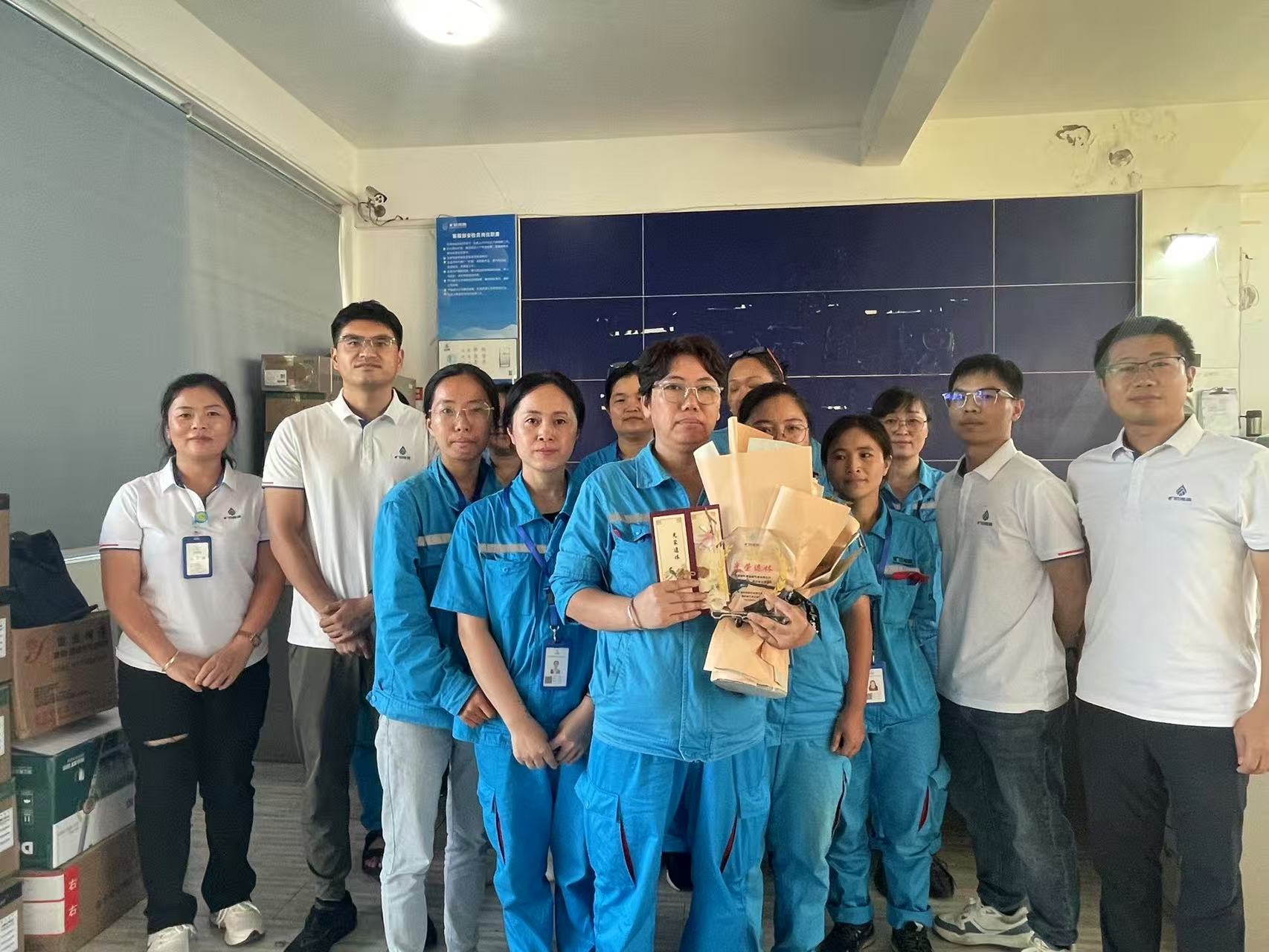 莆田燃?xì)馐聵I(yè)部副總陳濤濤、退休員工的部門負(fù)責(zé)人一起為兩位退休員工送上了帶向日葵的鮮花、印有 “光榮退休” 的蛋糕、帶有公司 logo 的水晶杯以及曠遠(yuǎn)能源副總裁兼莆田燃?xì)馐聵I(yè)部總經(jīng)理柯軍親筆簽名的感恩祝福賀卡。每一份禮物都飽含著公司對他們的深深敬意與誠摯感謝。