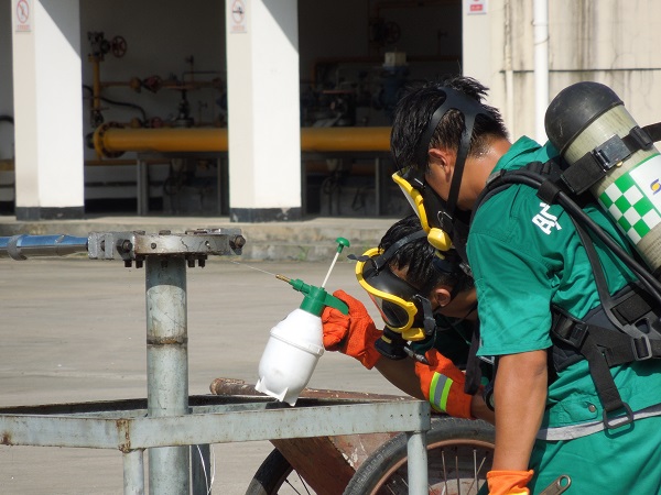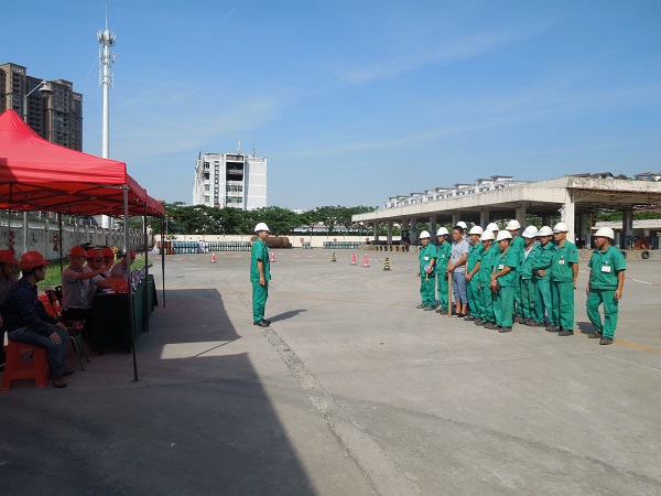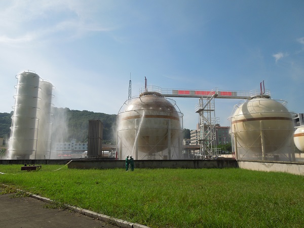 本次演練項(xiàng)目為:LPG1#儲罐底部出口閥被恐怖分子破壞造成液化石油氣泄漏事故的應(yīng)急處置。主要流程為:模擬事故發(fā)生、制服歹徒、報(bào)警、應(yīng)急啟動(dòng)、人員疏散、安全警戒、消防噴淋驅(qū)散稀釋燃?xì)鉂舛?、搶險(xiǎn)堵漏及最終解除警戒等。在總指揮的領(lǐng)導(dǎo)下,所有參演人員嚴(yán)肅認(rèn)真、有條不紊地進(jìn)行各個(gè)演練步驟,歷時(shí)一個(gè)小時(shí)后,演練圓滿結(jié)束。