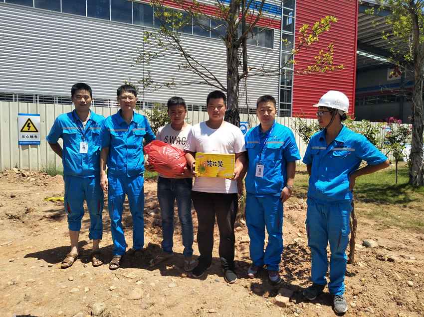7月18日,上杭曠遠能源有限公司總經理姚力爭、副總經理郭明亮、工程部副經理李寧森一行對宏盛市政上杭項目部施工班組人員進行實地高溫慰問工作,上杭曠遠能源有限公司堅持以人為本,抓好生產運行的同時,高度重視員工勞動保護工作。在盛夏高溫季節(jié),公司領導深入基層班組和施工現(xiàn)場,送防暑降溫水果及飲料,慰問冒高溫作業(yè)的施工班組人員,他們奮戰(zhàn)在工程建設的第一線,搶抓施工黃金季,確保各項工程的安全、優(yōu)質..